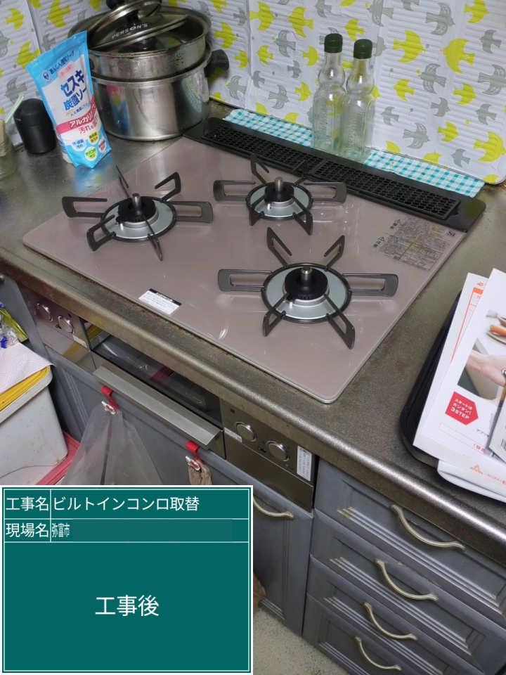 | 工事種別 | ガスコンロ・レンジフード交換, ベーシックタイプ(手動グリル) |