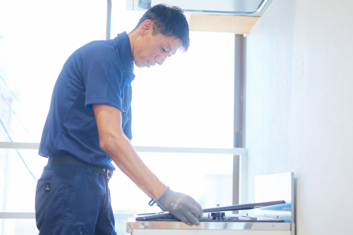 既存コンロの取り外し・新設コンロの取り付け・動作確認までを含め、作業時間は約1〜2時間程度。その日のうちに新しいガスコンロがご使用いただけます。